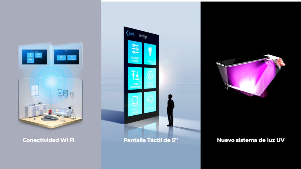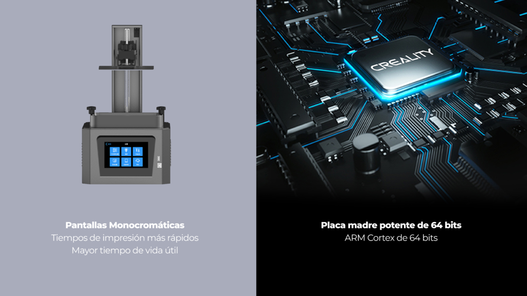 Además, cuenta con una pantalla LCD monocromática 2K que permite manejar tiempos de impresión más rápidos y prolongar su vida útil.