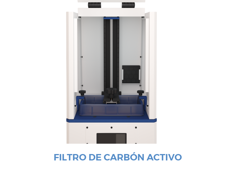 A la hora de imprimir en resina, el proceso de fotocurado por UV genera vapores tóxicos. En APOLO son absorbidos por su filtro de carbón activo, mientras que, en el resto de impresoras de esta misma tecnología, expulsa estos gases al ambiente obligando a instalar el equipo en lugares con ventanas o cerca de ventilaciones. Con Apolo se obtiene la libertad de instalar la impresora en el lugar a elección del usuario.
