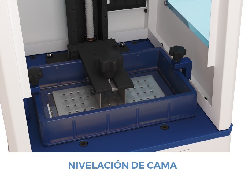 - Posee una batea translúcida con una graduación para medir el nivel de resina y poder visualizar la impresión al momento en que se realiza.