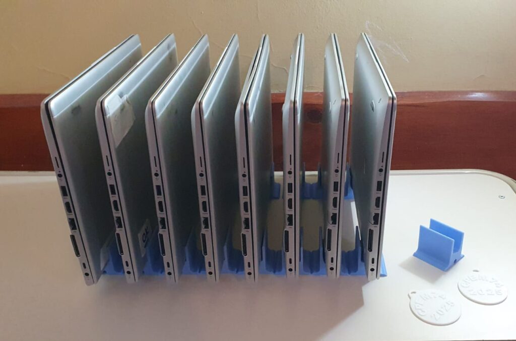 Creality dona a través de TP3D, con el objetivo de que tanto estudiantes como docentes puedan aprovechar sus múltiples beneficios. Esta herramienta no solo abre un sinfín de posibilidades para enriquecer el aprendizaje, sino que también permite la creación de recursos que facilitan las actividades escolares del día a día. Hasta el momento, se imprimieron soportes para 32 notebooks, una contribución que mejora la organización y funcionalidad dentro del entorno educativo.
