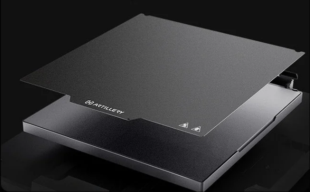 Todos los modelos de la serie Artillery Sidewinder X3 y X4 están equipados con una plataforma magnética PEI, que garantiza una excelente adherencia de las piezas a la base de impresión y facilita la extracción de las piezas una vez completada la impresión.