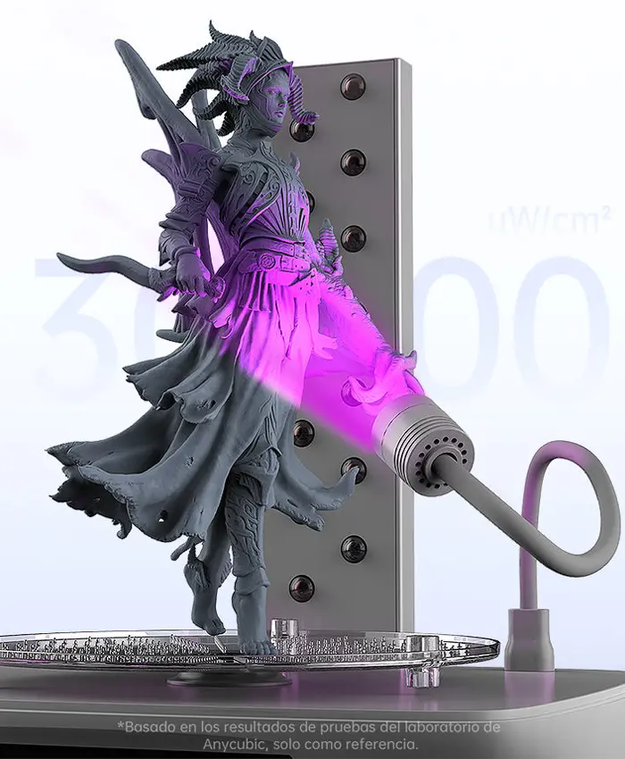 El Anycubic Wash & Cure 3 Plus incorpora una nueva disposición de luz con lente, aumentando en un 20% la uniformidad de polimerización. Esto garantiza un curado más homogéneo y una mejor calidad en cada modelo.